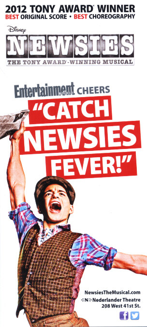 2012 Tony award winner best original score ยท best choreography Disney newsies the Tony award-winning musical Entertainment weekly cheers "cath newsies fever!" NewsiesTheMusical.com Nederlander Theatre 208 West 41st St.