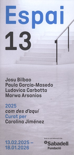 Espai 13 Josu Bilbao Paula García-Masedo Ludovica Carbotta Marwa Arsanios 2025 com des d'aquí Curat per Carolina Jiménez 13.02.2025 - 18.01.2026 Amb la col·laboració de: Sabadell Fundació