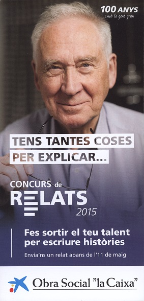 100 anys amb la gent gran Tens tantes coses per explicar... Concurs de relats 2015 Fes sortir el teu talent per escriure històries Envia'ns un relat abans de l'11 de maig Obra Social "la Caixa"