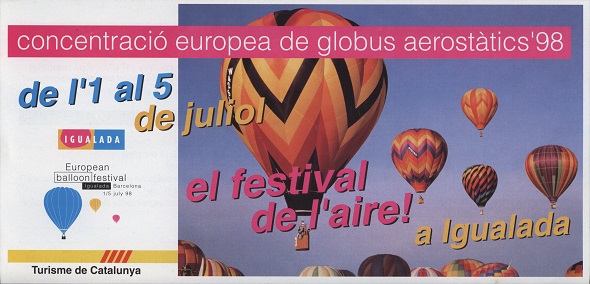 concentració europea de globus aerostàtics'98 de l'1 al 5 de juliol el festival de l'aire a Igualada European balloon festival Igualada Barcelona 1/5 july 98 Turisme de Catalunya