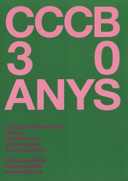 CCCB 30 anys 23, 24 y 25 febrero 2024 Música Instalaciones Conversación Puertas abiertas Entrada gratuita