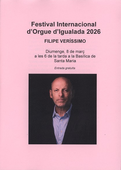 Festival Internacional d'Orgue d'Igualada 2026 Filipe Veríssimo Diumenge, 8 de març a les 6 de la tarda a la Basília de Santa Maria Entrada gratuïta