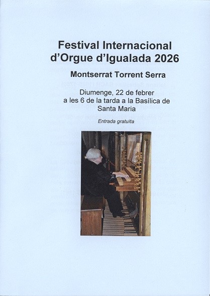 Festival Internacional d'Orgue d'Igualada 2026 Montserrat Torrent Serra Diumenge, 22 de febrer a les 6 de la tarda a la Basília de Santa Maria Entrada gratuïta