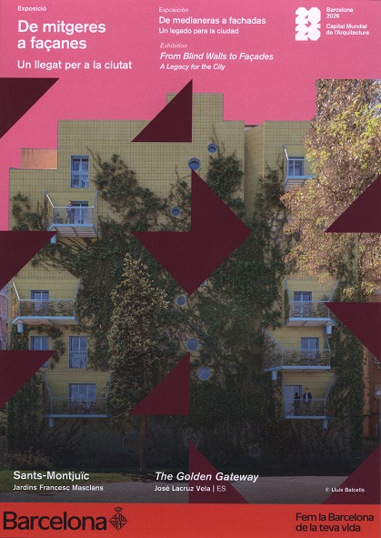 Exposició De mitgeres a façanes Un llegat per a la ciutat Exposición De medianeras a fachadas Un legado para la ciudad Exhibition From Blind Walls to Façades A Legacy for the City Barcelona 2026 Capital Mundial de l'Arquitectura Sants-Montjuïc Jardins Francesc Masclans The Golden Gateway José Lacruz Vela | ES Barcelona Fem la Barcelona de la teva vida