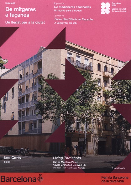 Exposició De mitgeres a façanes Un llegat per a la ciutat Exposición De medianeras a fachadas Un legado para la ciudad Exhibition From Blind Walls to Façades A Legacy for the City Barcelona 2026 Capital Mundial de l'Arquitectura Les Corts Lluçà Living Threshold Carlos Montero Pérez Xavier Granados Esteve | ES amb | con | with Joan Carazo Anglada Barcelona Fem la Barcelona de la teva vida