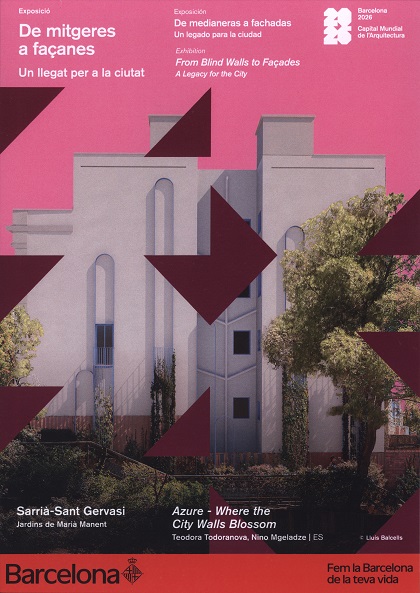 Exposició De mitgeres a façanes Un llegat per a la ciutat Exposición De medianeras a fachadas Un legado para la ciudad Exhibition From Blind Walls to Façades A Legacy for the City Barcelona 2026 Capital Mundial de l'Arquitectura Sarrià-Sant Gervasi Jardins de Marià Manent Azure - Where the City Walls Blossom Teodora Todoranova, Nino Mgeladze | ES Barcelona Fem la Barcelona de la teva vida
